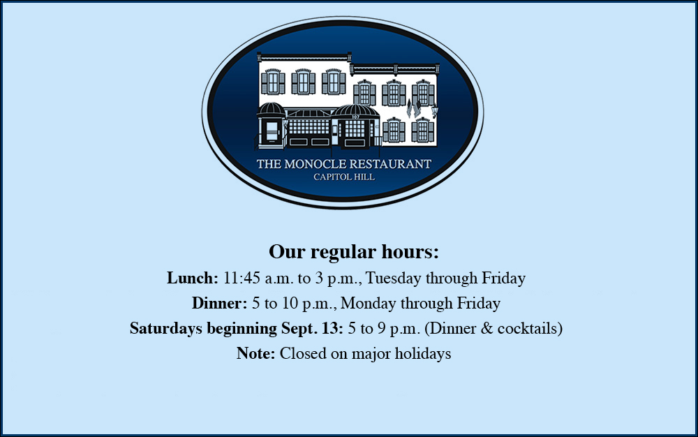 A favorite for Members of Congress, staff and visitors to our nation’s capital, The Monocle is the closest restaurant to the U.S. Capitol building and Union Station and provides a delightful dining experience.